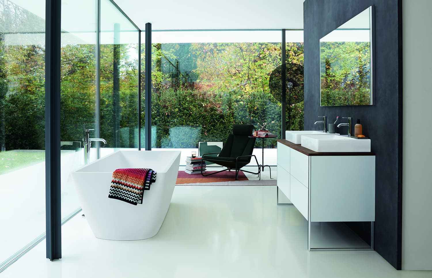 The XSquare bathroom furniture range from Duravit combines different materials to produce something quite new. The cabinetry and vanity units have wooden finishes and contrast