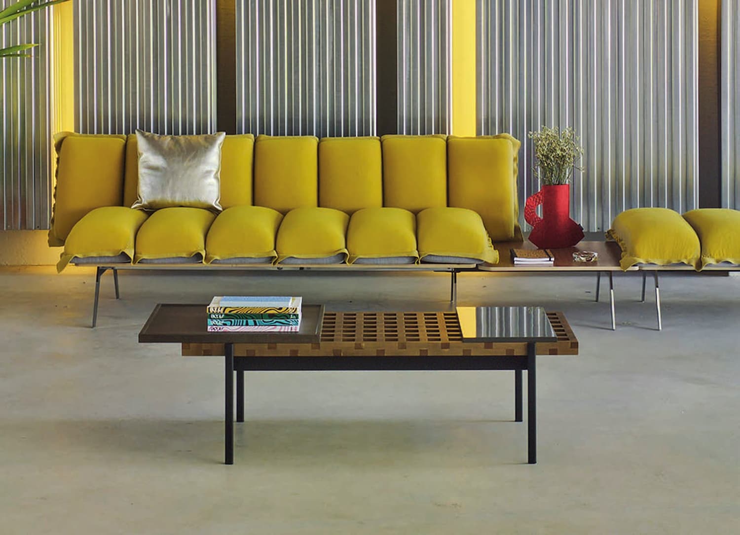 The design for Sancal’s Interchange bench table was inspired by the architectural forms of Turati station’s lattice ceiling. The solid ash wood lattice comes in