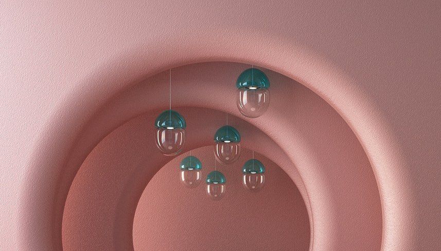 Dew + Drop is a pendant lamp made of two pieces of hand-blown glass. Resembling a dewdrop resting on top of a falling droplet of