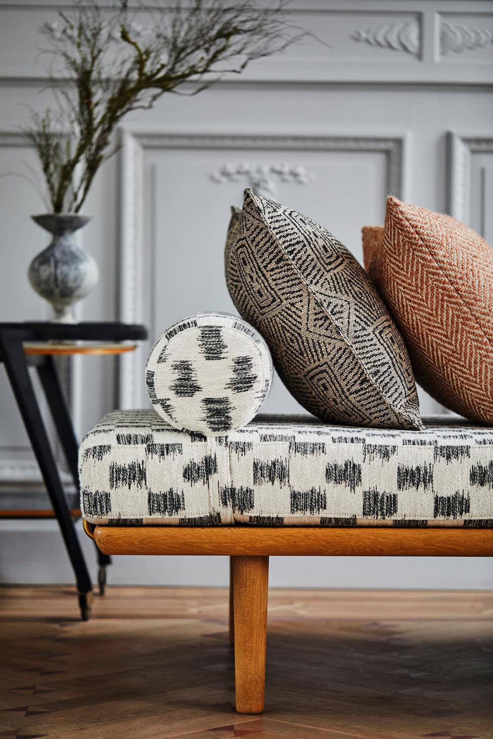 All of the fabrics shown here are from Larsen. The hardy rustic look of the fabric for these cushions are an ideal accompaniment to the