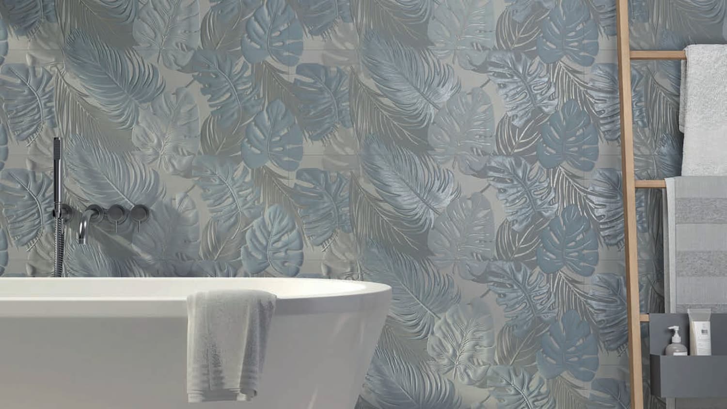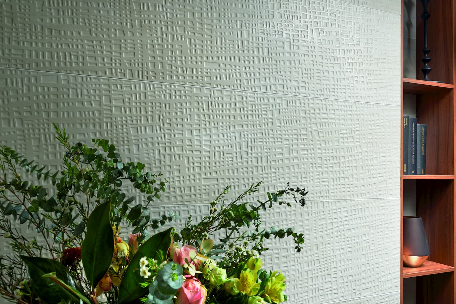 The Elven collection from Keraben comprises 150mm x 37mm tiles, with a design that gives the wall great dimension and an attractive contemporary look.