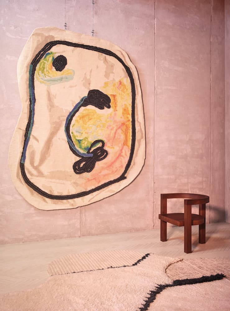 British artist Faye Toogood and CC-Tapis have created a bespoke collection of six handmade rugs entitled “Doodles”. Shown here on the wall is the Winter