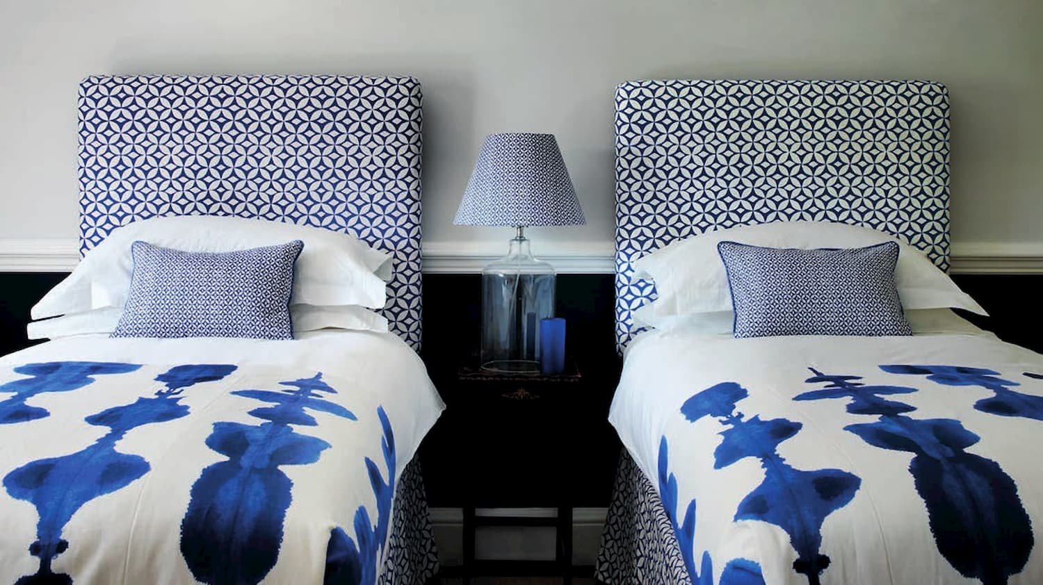 The Quadria fabric collection from Korla in fresh Ink Blue is made from linen, cotton and nylon