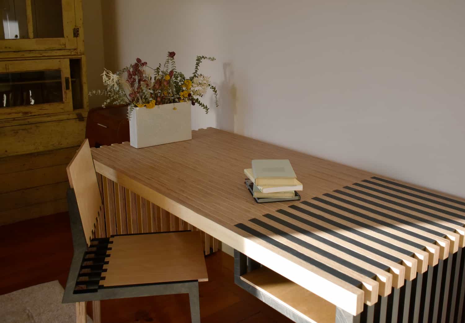 The Timb Chair has a simple wooden structure with a richness of detail in the contrast between its curves and sharp lines. Its artisan traditions
