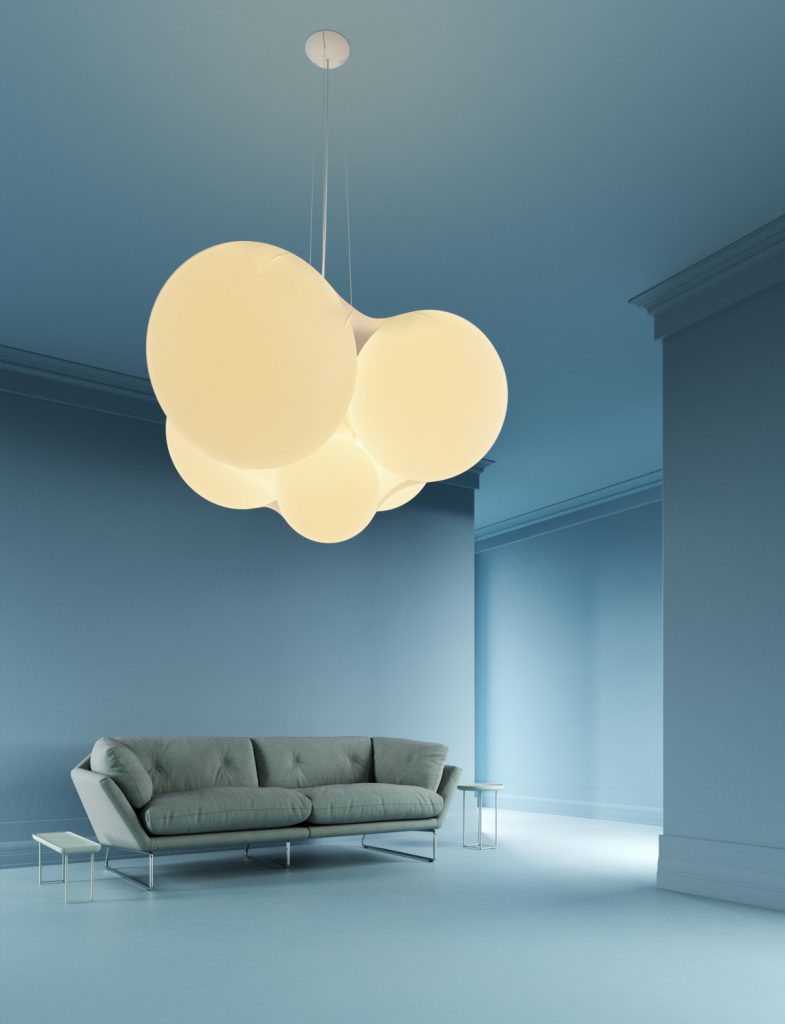 Designed by Dima Loginoff, Cloudy is a true luminous sculpture that dominates the space with its presence and diffuses a soft and cosy light.