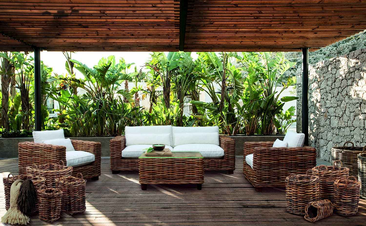 This natural handwoven rattan lounge set from Sybartum offers large and comfortable seating. With the boho trend now brought back to the fore, rattan furniture