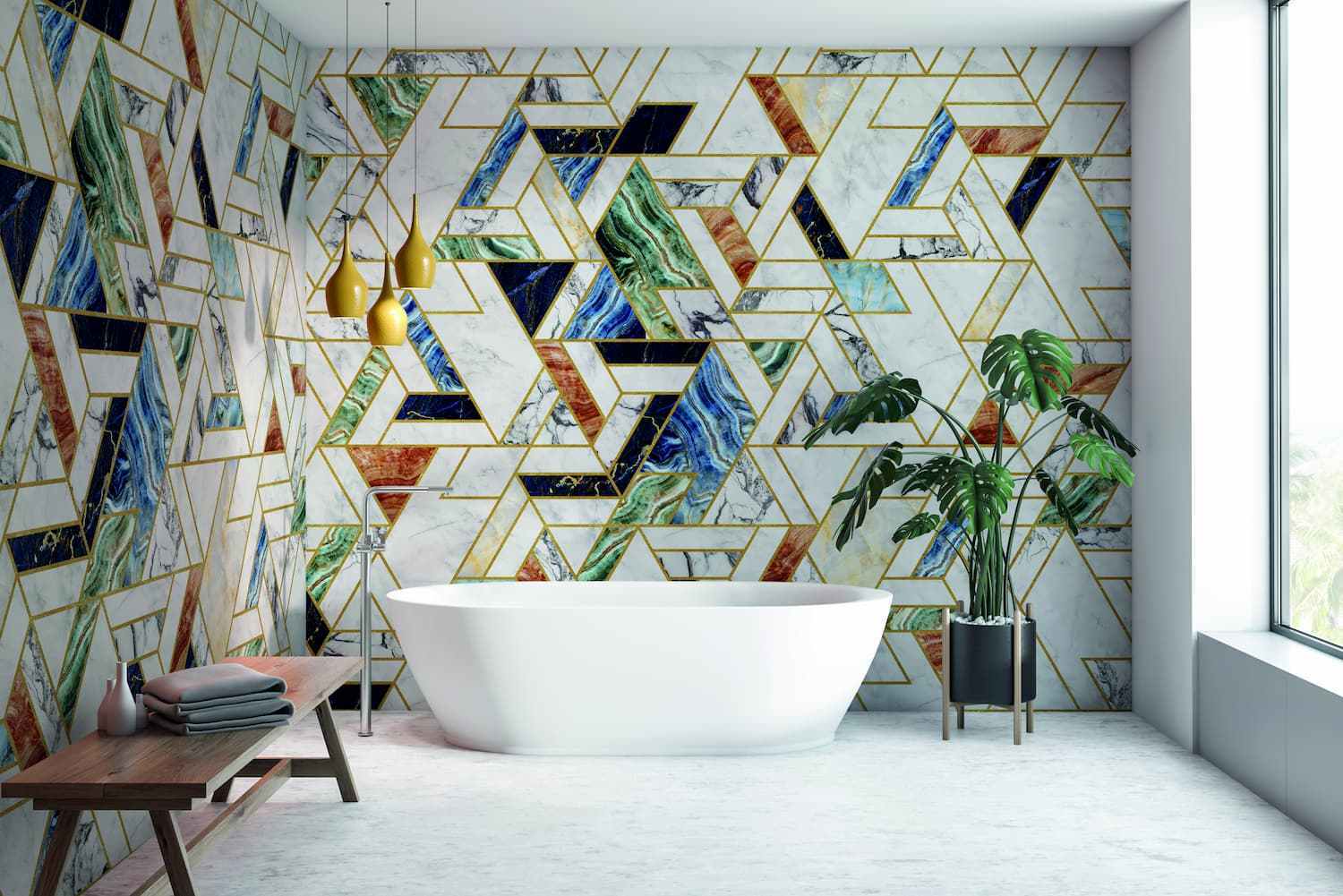 Malla Coralina wallpaper from Coordonne’s Random Archist collection comes in four different colourways. Its bold geometric design could be mistaken for tiles and makes a