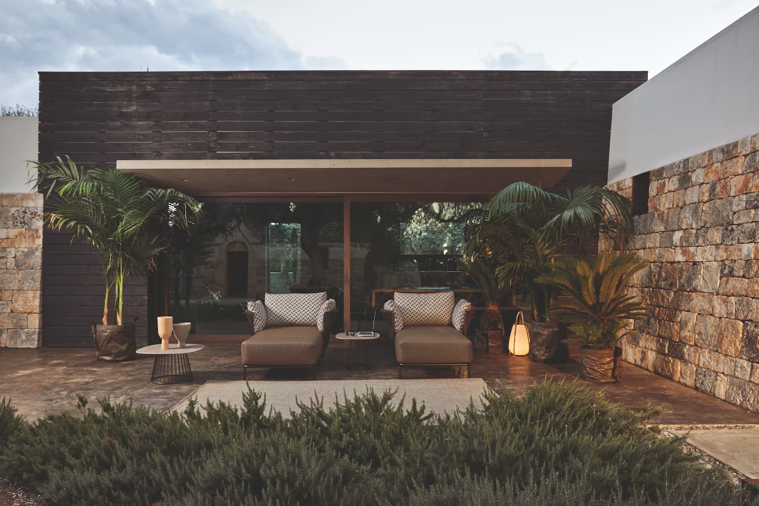 Roberti Rattan’s Queen collection combines comfort with style through its sofas, armchairs and chaise longue. Shown here in their Bronze and Ebony version, the collection
