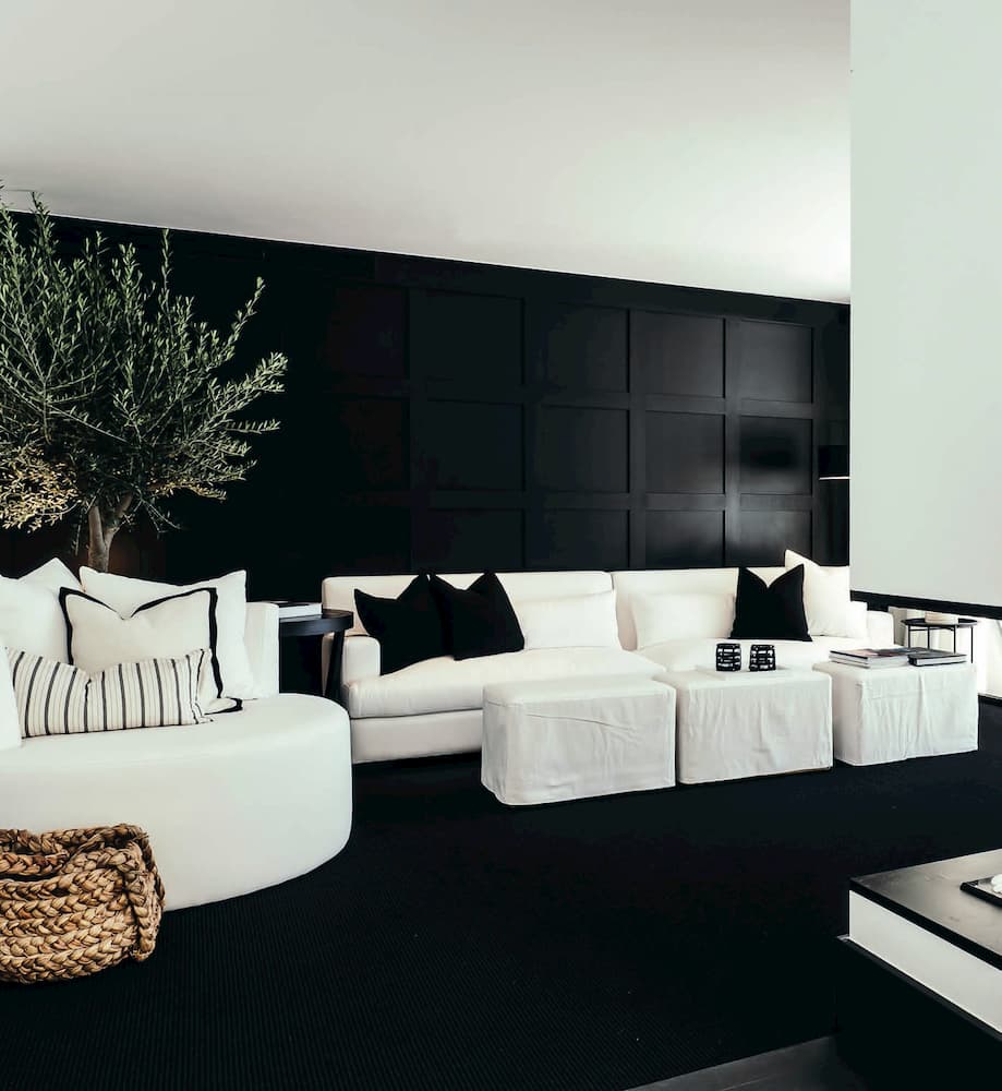 The monochromatic design for this room has created a striking yetpeaceful ambience. The simplicity of just using two colours emanates tranquillity, making the room appear