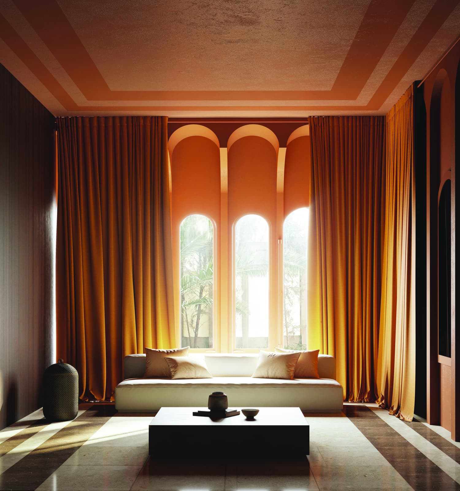 The new Phantom Noble dim-out fabric range from Création Baumann features a bold design on 100% flame-retardant polyester which has a soft and fluid quality.