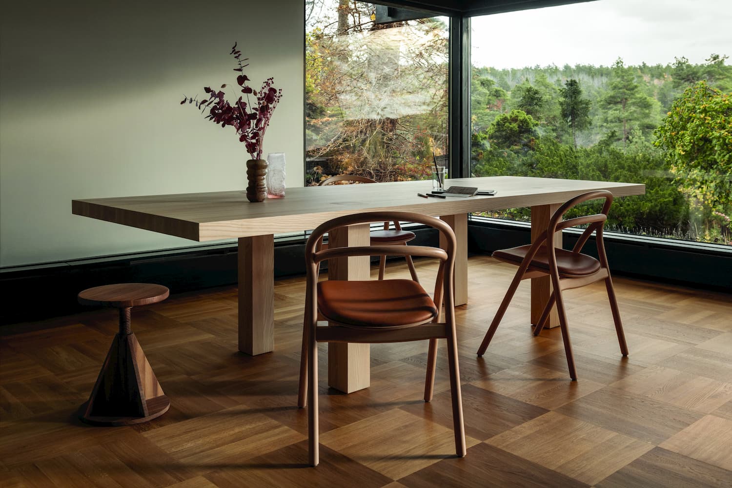 Designed by Max Lamb, Hem’s Max Table is made from solid ash and is as boldly structured as it is strong. It is paired here