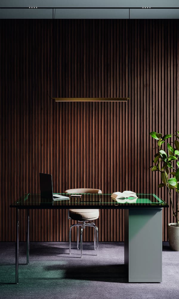 Cassina’s Bureau La Semaine à Paris was designed by Le Corbusier, Pierre Jeanneret, Charlotte Perriand. This special desk is made with a float glass top,