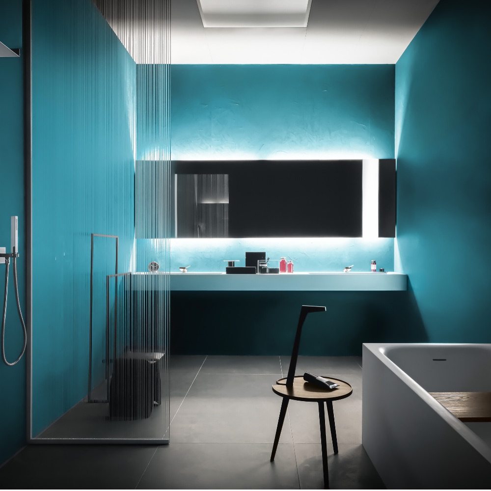 Ludovica+Roberto Palomba were the designers for Zucchetti’s Him bathroom range. “Him,” they explain, “is a piece of architecture inhabited by an almost organic ergonomic handle.