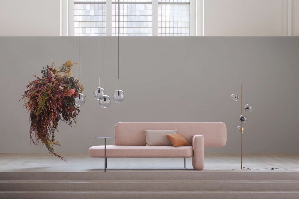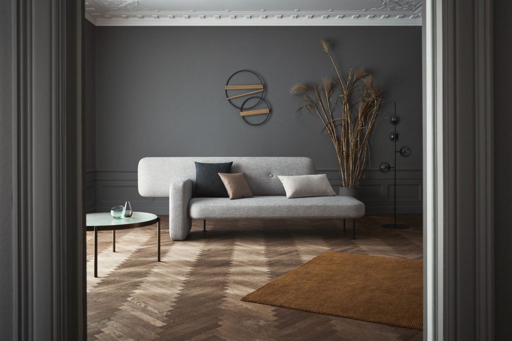 The unusual Pebble sofa with its built-in side table from Bolia has a unique asymmetric shape. This iconic seating, designed by Santiago Bautista, was specifically created to be a talking point.