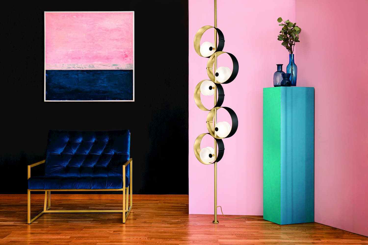 Masiero’s Sound collection, shown here as their STL floor lamp, comes in various versions but serves not only as illumination but also as a sculptural