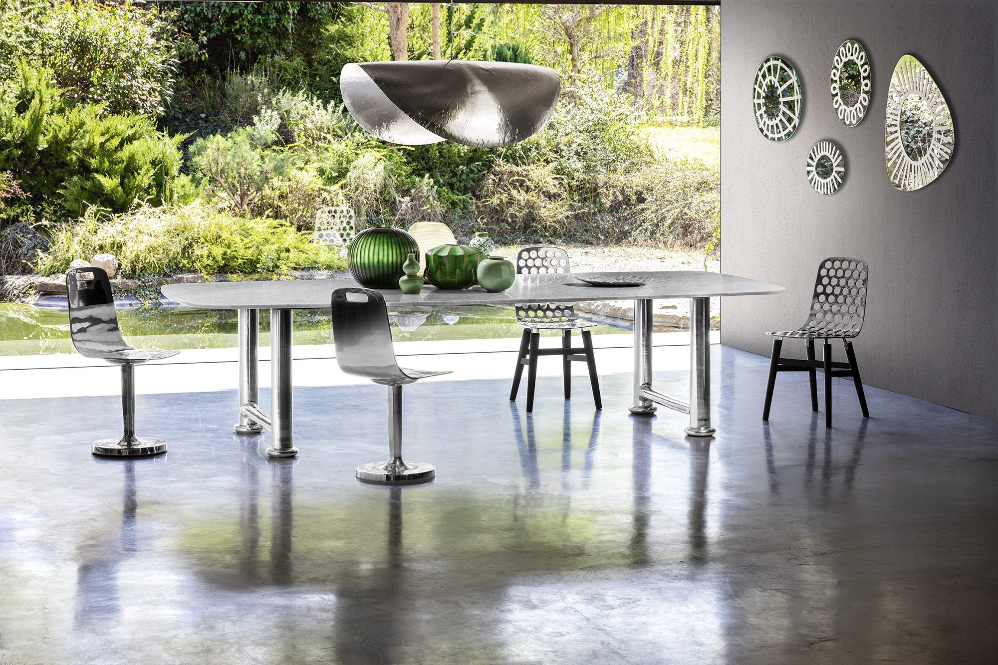 The Next 121 cast polished aluminium chair with walnut or oak legs was designed by Paola Navone for Gervasoni.