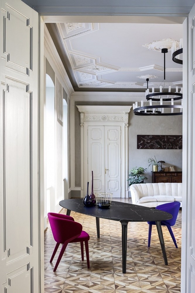 This stunning dining table from Bross Italy is complemented perfectly with their Nora armchairs in electric blue and vivid pink. The look adds a contemporary touch