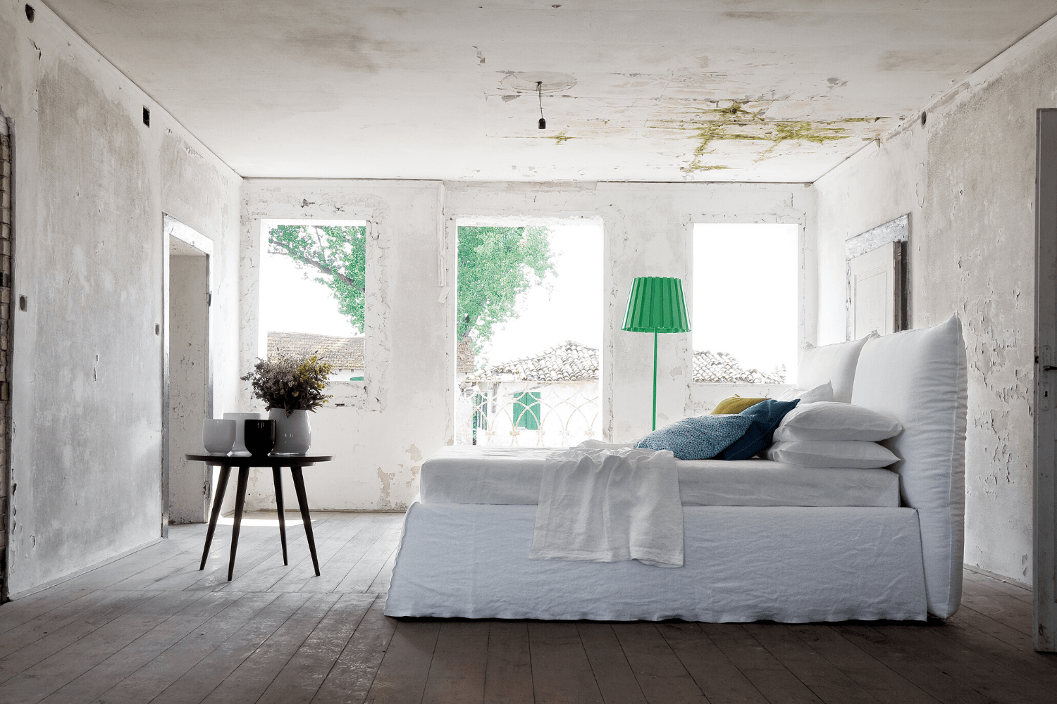 Flexteam’s Over bed has a contemporary yet casual look, with a padded headboard and removable all-white covers for a fresh touch.