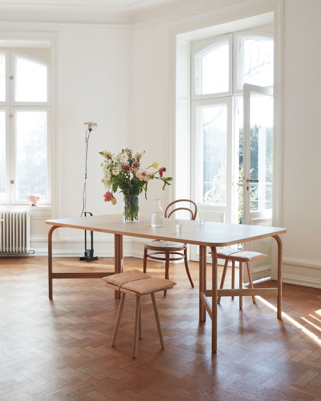 The Aldus table from Skagerakis a beautifully crafted rectangular model withsmooth rounded edges that can accommodate up to eight people. Shown here with their Georg