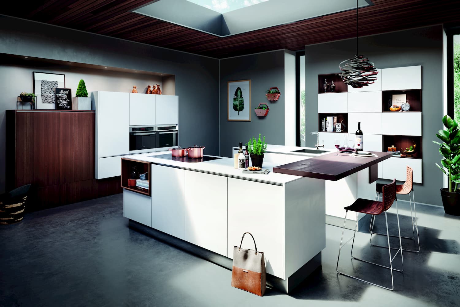 The Polarweiss kitchen range from Hacker combines white satin lacquer with wild light oak veneer.