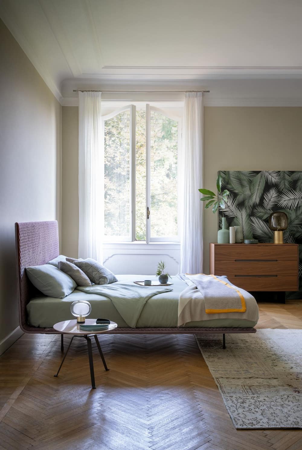 Bonaldo’s Thin Ego bed has slender feet to give the appearance of lightness. The headboard and base are embroidered in an attractive diamond pattern.