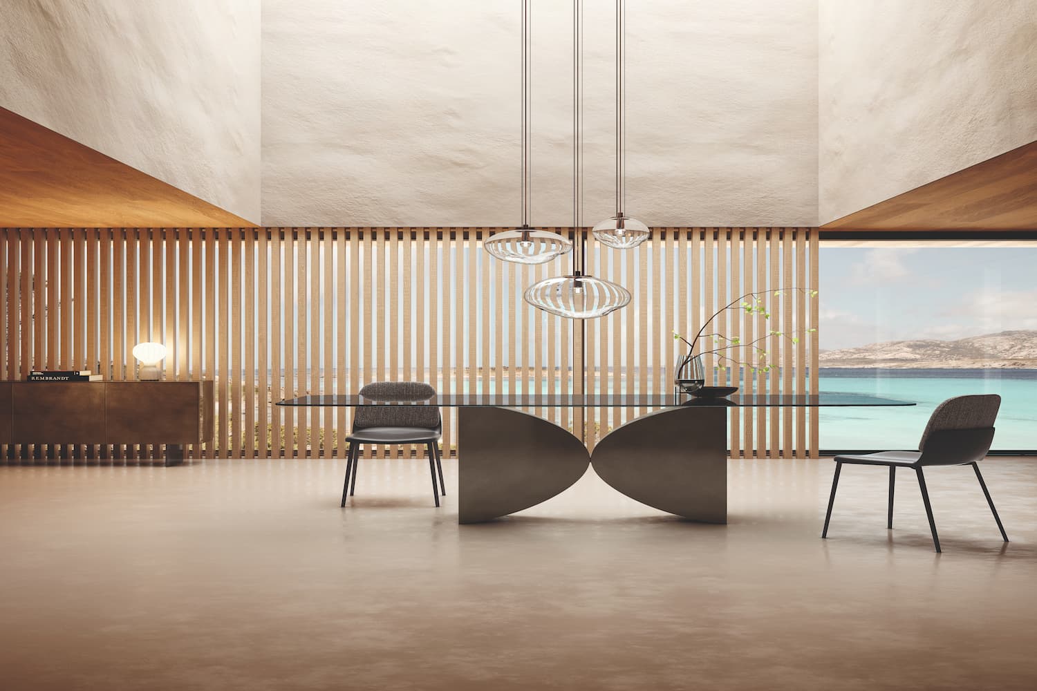 The contemporary Meet table from Lago has an eye-catching geometric base that serves as a beautiful sculptural element which enhances the overall look of this