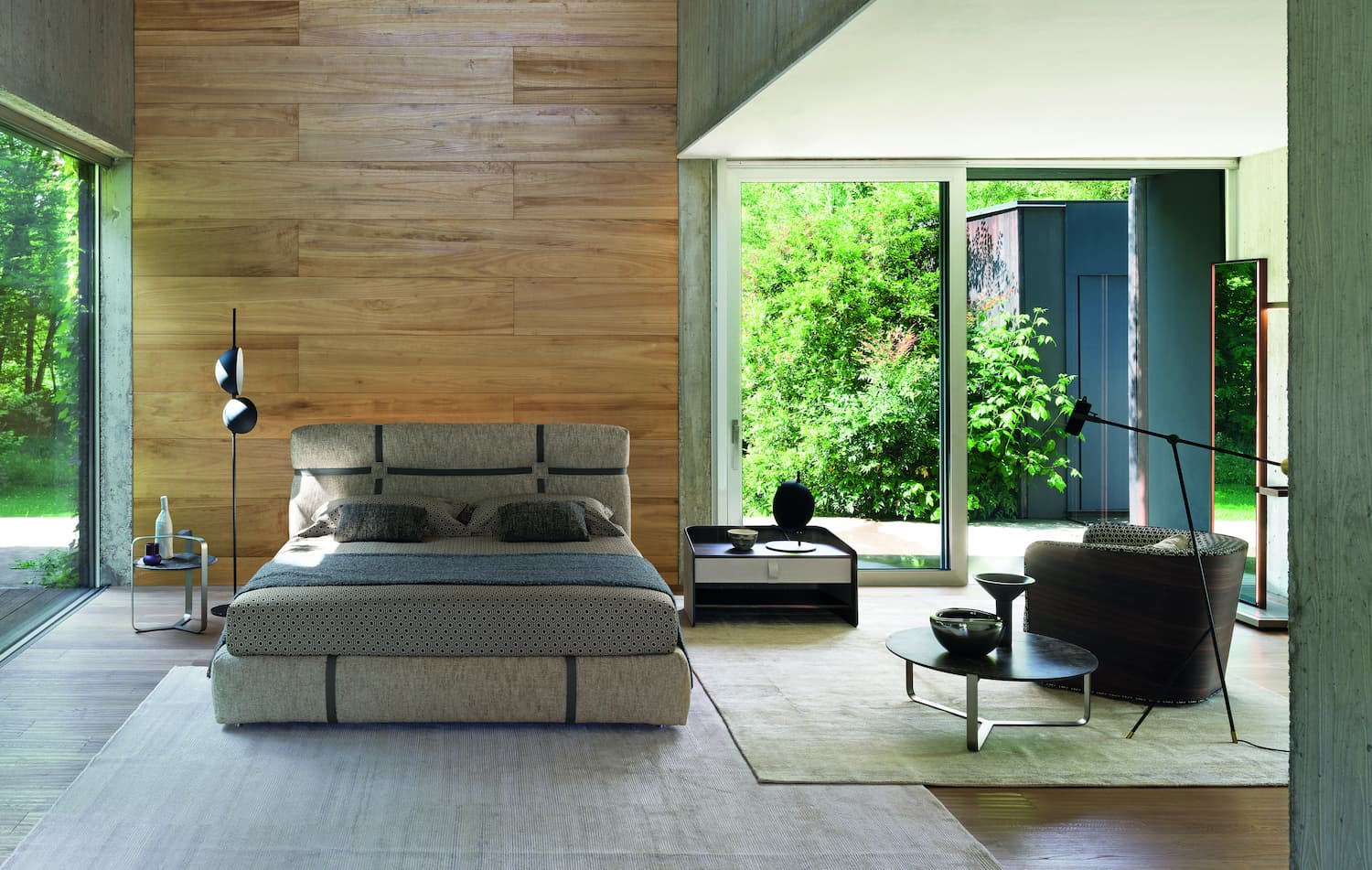 You can curl up comfortably with Gloster’s Mistral seating collection, protected by handcrafted wraparound backs. The neutral colour palette complements the aesthetics of an outdoor