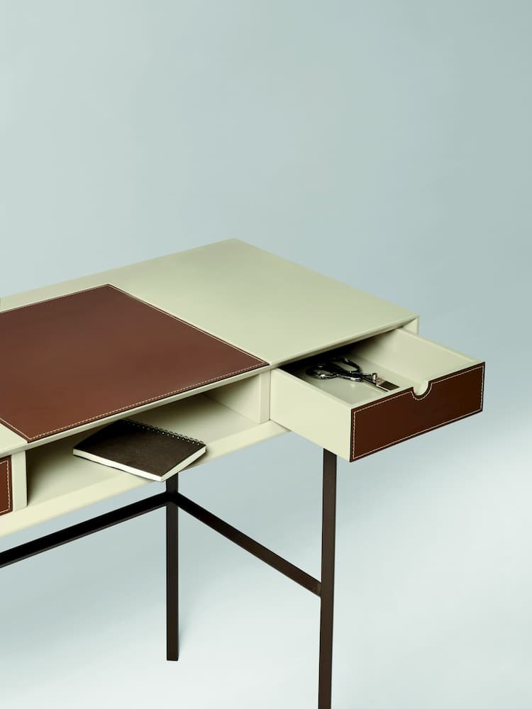 The Chapeau desk from Alivar can also serve as a make-up table. It has two side drawers and a central open compartment, as well as