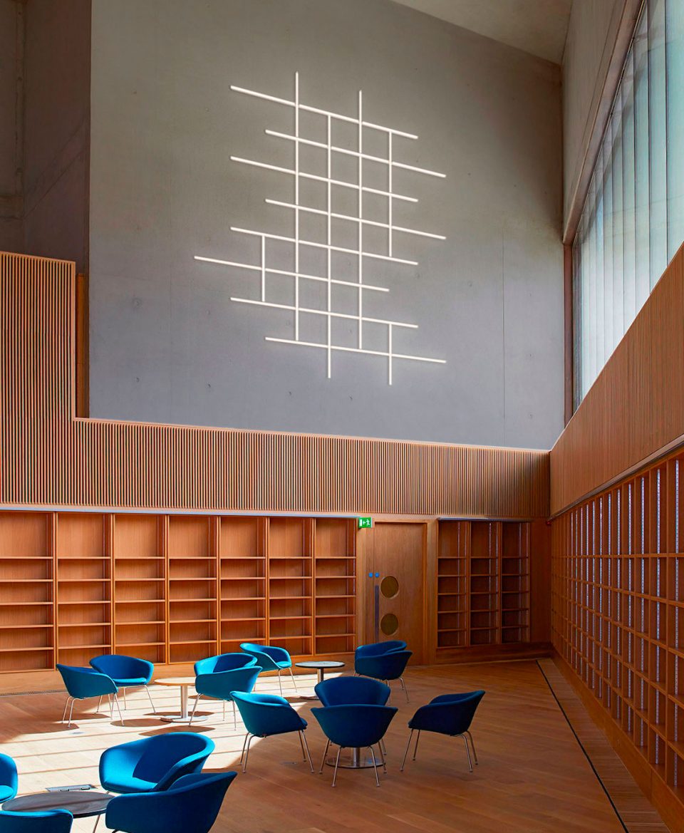 Vibia’s new Halo Wall light by Martin Azua, features crisp linear geometry that is softened by its warm glow. Its ethereal look washes the wall