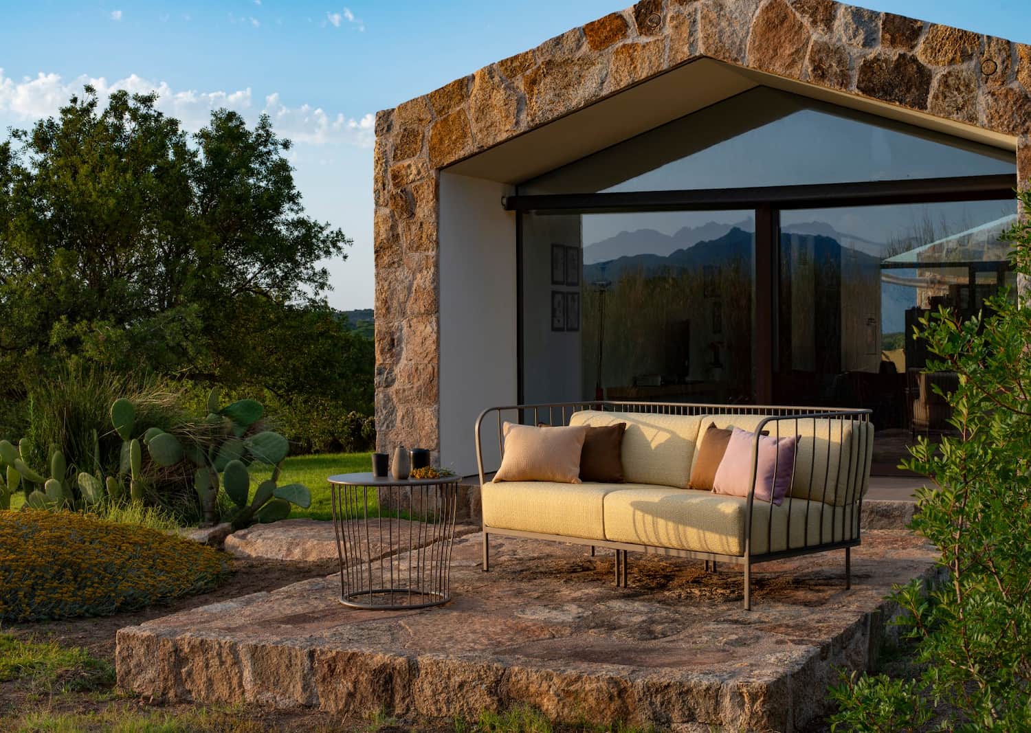 The Cannolè modular seating system from Emu features a frame made from galvanised steel tubes, with large weatherproof seat cushions. Emu is available through Outdoor
