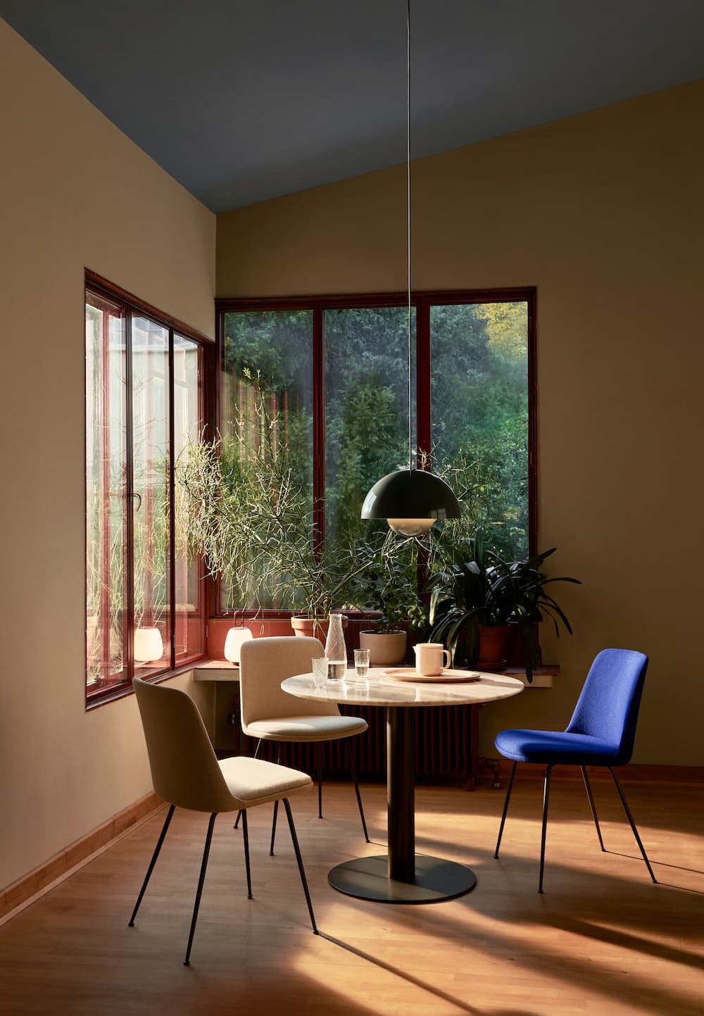 Designed by Sami Kallio for &Tradition, the Inbetween SK18 circular table features a marble tabletop and bronzed or black powder coated steel base. It is