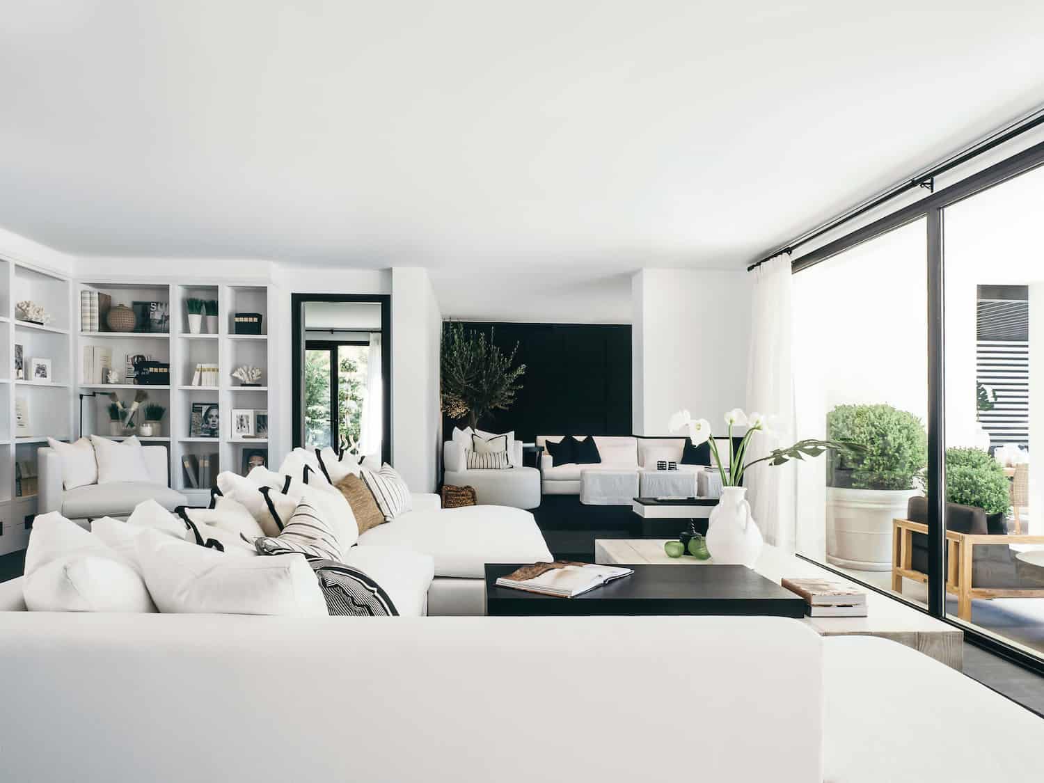 Simplicity, clean lines and a monochrome colour palette create a peaceful and timeless aesthetic. The black contrasting against the white makes the room particularly relaxing