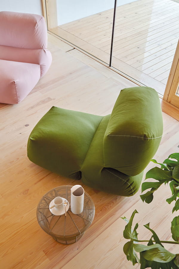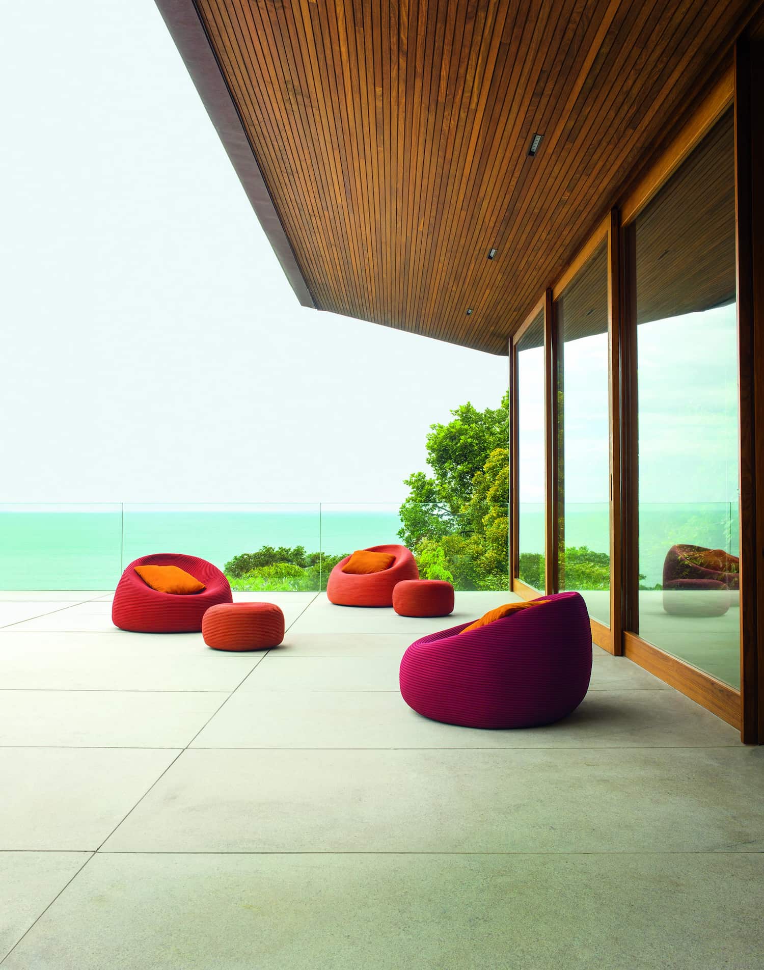 The Otto collection from Paola Lenti includes a two seater sofa and poufs available in different shapes, dimensions and colours – and it can also