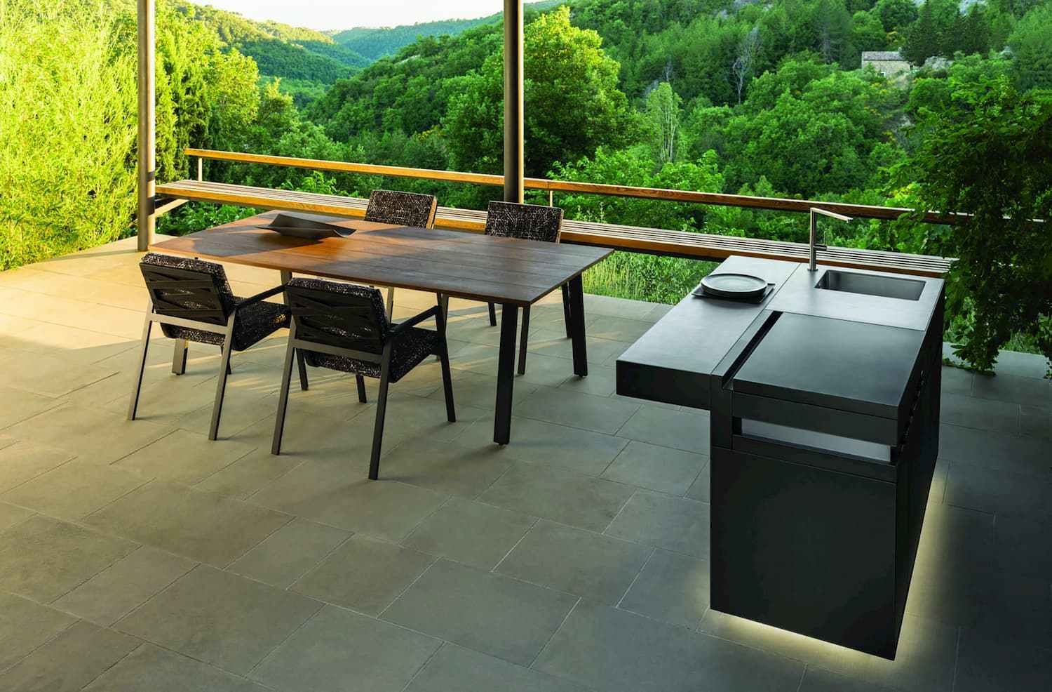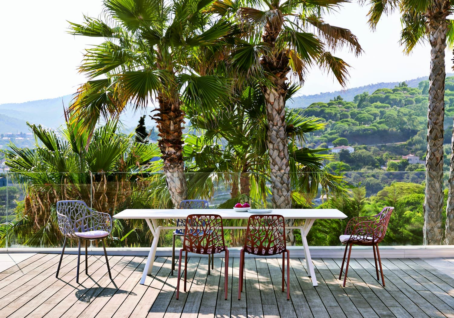 The iconic Forest chairs from Fast are made from extruded and die-cast aluminium that has been designed to celebrate the patterns of light and shadow