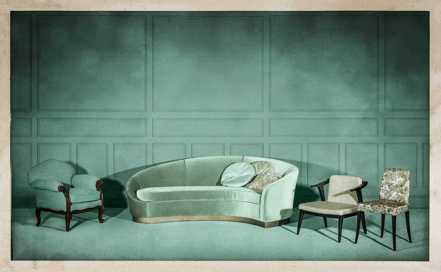 The Volume collection from Kirkby Design is wonderfully soft to the touch. The range comprises soft virgin wool, chunky bouclé, shaggy mohair and three-dimensional velvets.