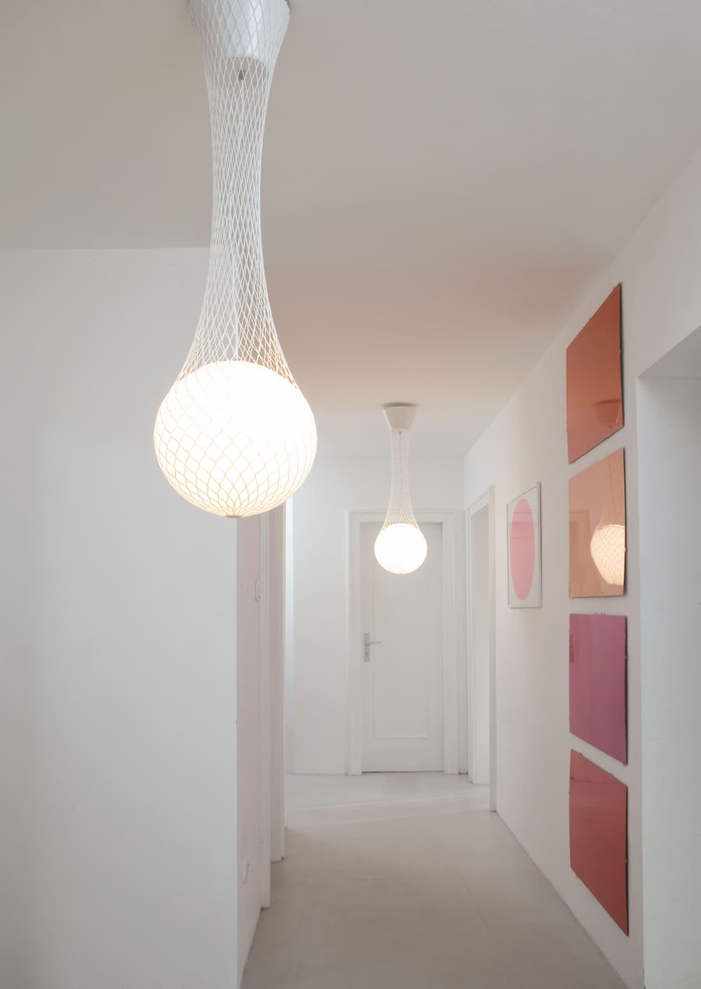 The eye-catching Network pendant lamp from Formagenda comes in three lengths and has a glowing glass ball hanging within a net which comes in either