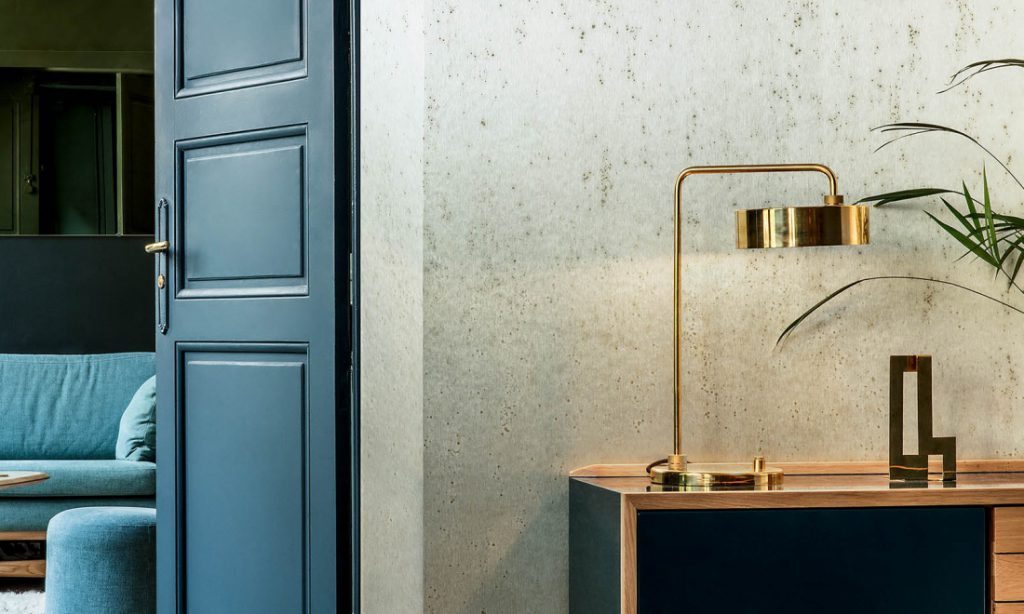 The whole concept focuses on one pattern, Stellar, which is available in 24 colours. These colours are not just restricted to the traditional metallics of gold, chrome and copper. The range also includes fresh colours such as pink, green and blue, so that you can furnish your home with an atypical metallic look.