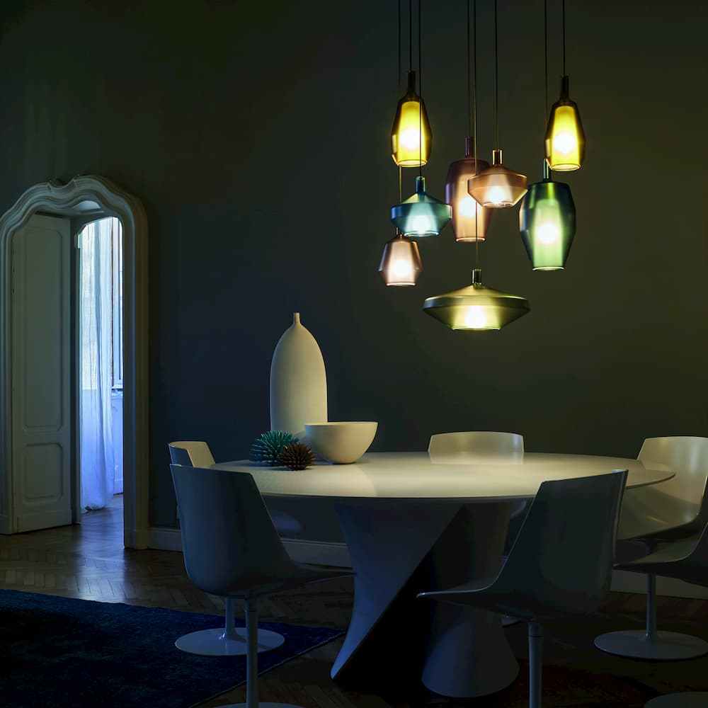 Mom lamps from Penta are inspired by Venetian Murano glass vases and look like precious stones dangling magically overhead.
