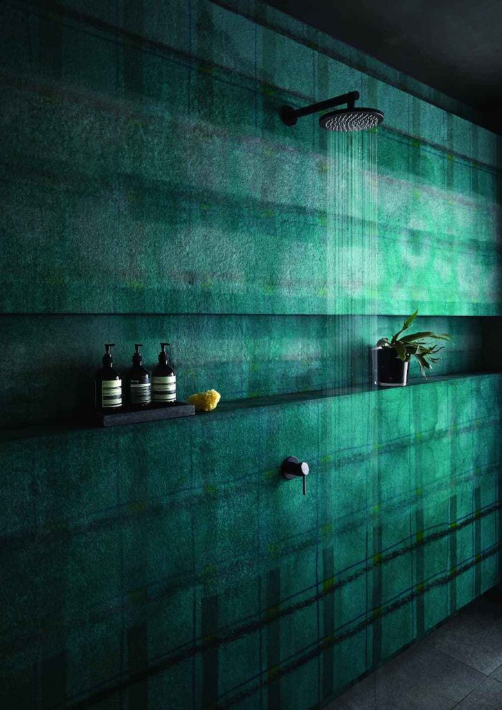 The Italian Dandy wallpaper collection from Wall&Decò’s Wet System waterproof range is available in two tones of sultry blue, creating a striking look for any bathroom wall (www.wallanddeco.com).