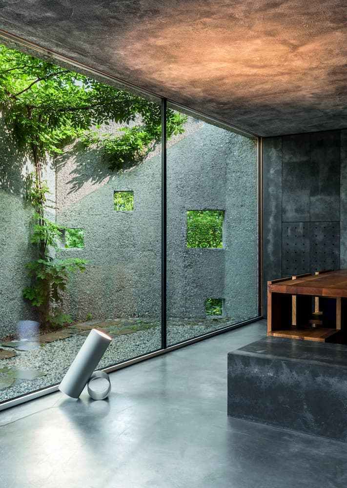 Designed by Nendo for Floshe, the Sawaru floor lamp comprises two independent cylinders touching each other perpendicularly. One cylinder provides the light source and the