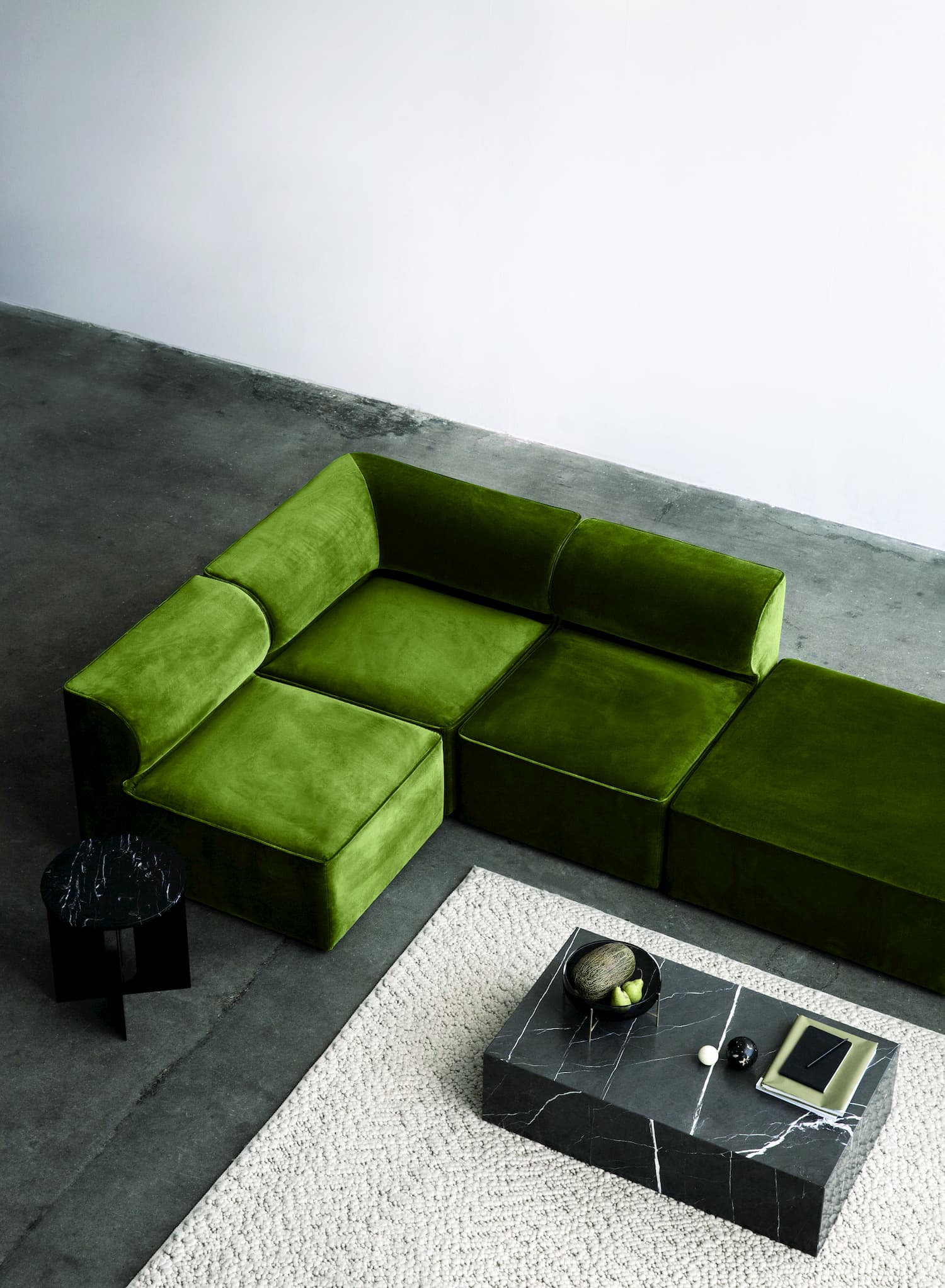 The Eave modular sofa by Menu takes its name from eaves – the lower edges of a roof that meet or overhang a wall. The