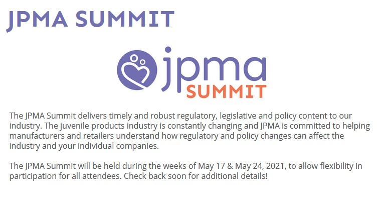 MOUNT LAUREL, N.J. – The Juvenile Products Manufacturers Association will hold its annual summit the weeks of May 17 and May 24, allowing flexibility for