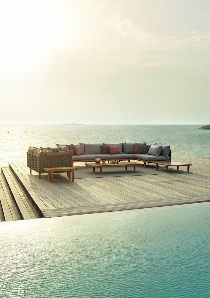 Designed by Jean-Marie Massaud, Dedon’s Sealine collection features a handcrafted teak frame, comfy cushions and a backrest in either maritime rope or thick fibre.